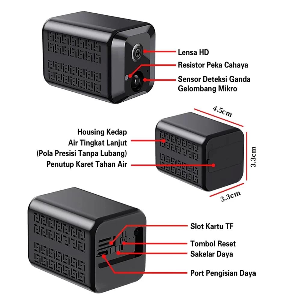 - Panjang sisi kotak mini, kamera mini 2cm yang sangat kecil