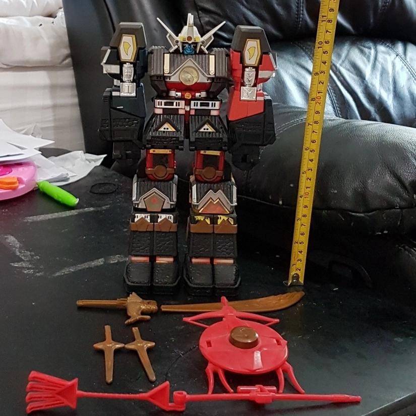 Action Figure Power Rangers Shogun Megazord. Size besar. Tinggi 28 cm. BUKAN size micro yang tingginya hanya 18 cm. Bisa dipisah jadi 5 zord (lihat gambar). Item batangan, tanpa dus original. Bisa digabungkan dengan Falconzord (lihat gambar). Falconzord dijual terpisah. Barang akan dikemas dengan bubble wrap dan kardus. beli = setuju. no return. Action figure lain: 1. Ninja Megazord 2. Zeo Megazord 3. Falconzord 4. Ninjo