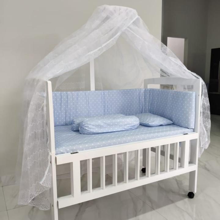 -Dilengkapi Pagar samping untuk menjaga agar bayi tidak jatuh dari tempat tidur