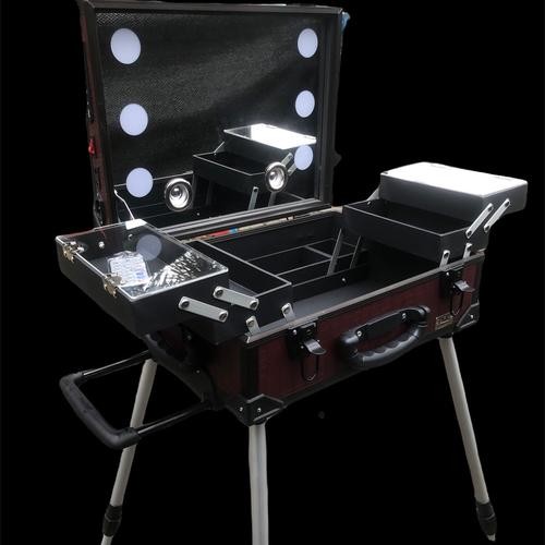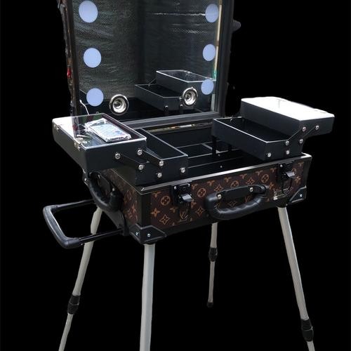 Tas makeup ini dilengkapi dengan 2 speaker bluetooth yang bisa digunakan untuk menyambungkan USB, dilengkapi juga dengan 4 stik stand yang bisa dipanjang-pendekkan sesuai kebutuhan, serta 6 lampu LED berubah warna putih, warm white, kuning membuat tampilan Anda saat bermakeup lebih baik dari menggunakan lampu bolam.