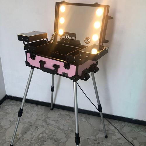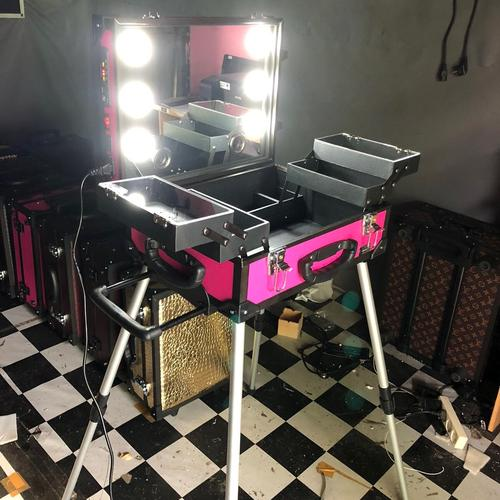 Tas makeup ini dilengkapi dengan 2 speaker bluetooth yang bisa digunakan untuk menyambungkan USB, dilengkapi juga dengan 4 stik stand yang bisa dipanjang-pendekkan sesuai kebutuhan, serta 6 lampu LED berubah warna putih, warm white, kuning membuat tampilan Anda saat bermakeup lebih baik dari menggunakan lampu bolam.