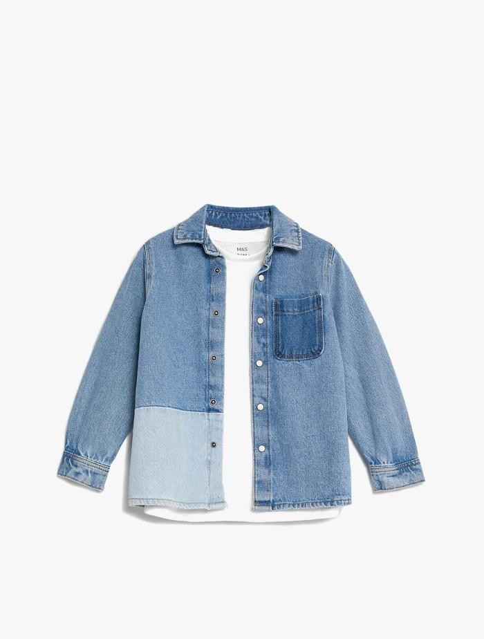 SPU : MSS4812D-T88 Details Regular fit Button fastening Collared neck Long sleeve Composition Denim shirt - 100% cotton (exclusive of trimmings), Tee shirt - 100% cotton , Knitted Ribbing - 98% cotton, 2% elastane Care Keep Away From Fire