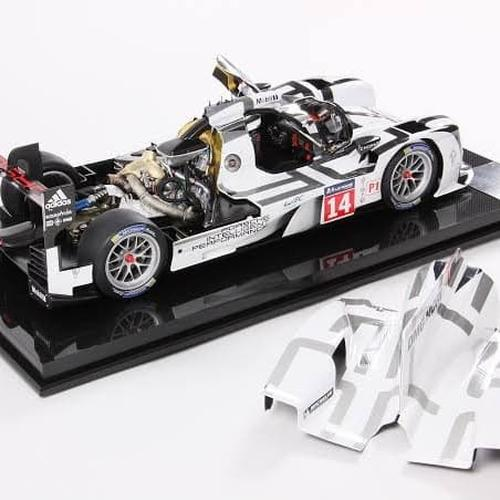 A fine 1:8 large-scale collector’s model of the Porsche 919 Hybrid as raced at Le Mans in 2014 by Romain Dumas, Marc Lieb and Neel Jani.
