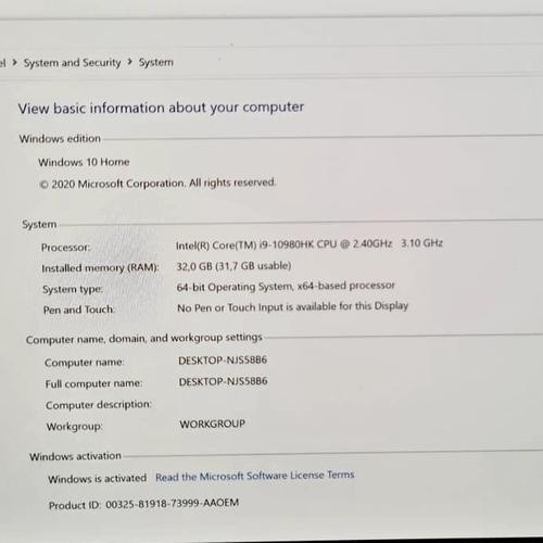 Processor : Intel Core i9-10980 HK 5.6 GHz with 16 CPUs Desktop