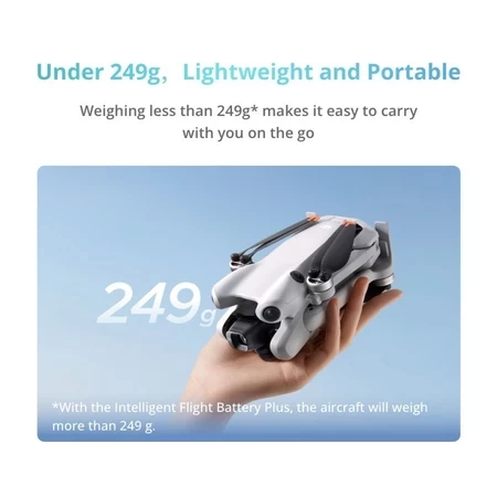 Sensor 1/1.3-inch CMOS 4K/60fps HDR True Vertical Shooting Omnidirectional Obstacle Sensing untuk pelacakan yang stabil 20km FHD Video Transmission Fitur ActiveTrack 360° Dilengkapi Advanced Pilot Assistance Systems (APAS) untuk keamanan tambahan Kelengkapan dalam dus : DJI Mini 4 Pro x1 DJI RC-N2 Remote Controller x1 Intelligent Flight Battery x1 Spare Propellers (Pair) x1 Screws x6 Screwdriver x1 DJI RC-N2 RC Cable (USB-C Connector) x1 DJI RC-N2 RC Cable (Lightning Connector) x1 Type-C to Type-C PD Cable x1 Gimbal Protector x1 Propeller Holder x1 Kamera Image Sensor 1/1.3-inch CMOS, Effective Pixels: 48 MP Lens FOV: 82.1° Format Equivalent: 24 mm Aperture: f/1.7 Focus: 1 m to ∞ ISO Video Normal and Slow Motion: 100-6400 (Normal) 100-1600 (D-Log M) 100-1600 (HLG) Night: 100-12800 (Normal) Photo 12 MP: 100-6400 48 MP: 100-3200 Aircraft Takeoff Weight < 249 g Standard aircraft weight (including the Intelligent Flight Battery, propellers, and a microSD card). Dimensions Folded (without propellers): 148×94×64 mm (L×W×H) Unfolded (with propellers): 298×373×101 mm (L×W×H) Max Ascent Speed 5 m/s (S Mode) 5 m/s (N Mode) 3 m/s (C Mode) Max Descent Speed 5 m/s (S Mode) 5 m/s (N Mode) 3 m/s (C Mode) Gimbal Stabilization 3-axis mechanical gimbal (tilt, roll, pan) Mechanical Range Tilt: -135° to 80° Roll: -135° to 45° Pan: -30° to 30° Remote Kontrol Max Operating Time Without charging any mobile device: 6 hours When charging a mobile device: 3.5 hours Max Supported Mobile Device Size 180×86×10 mm (L×W×H) Charging Time 2.5 hours Charging Type It is recommended to use a 5V/2A charger. Baterai Compatible Battery DJI Mini 4 Pro Intelligent Flight Battery, DJI Mini 3 Series Intelligent Flight Battery Plus Capacity Intelligent Flight Battery: 2590 mAh Intelligent Flight Battery Plus: 3850 mAh Recommended Charger DJI 30W USB-C Charger or other USB Power Delivery chargers (30 W)