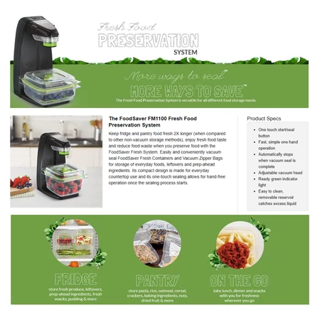 Menjaga makanan tetap segar hingga 2x lebih lama di lemari es atau lemari. digunakan dengan wadah FoodSaver, Cocok untuk bepergian, nikmati makanan segar di rumah, kantor, sekolah, atau saat bepergian.