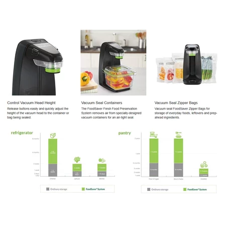 FoodSaver ini dapat menyimpan sisa makanan dengan mudah dan cepat. Tas FoodSaver Fresh Zipper adalah alternatif hemat ruang yang bagus untuk wadah, dan dapat digunakan untuk memanfaatkan sistem Pengawetan Makanan Segar FoodSaver ini. Juga bebas BPA dan mudah digunakan, ini bagus untuk menjaga kesegaran makanan beku yang anda gunakan setiap hari, seperti daging deli, keju, camilan, dan sisa makanan.
