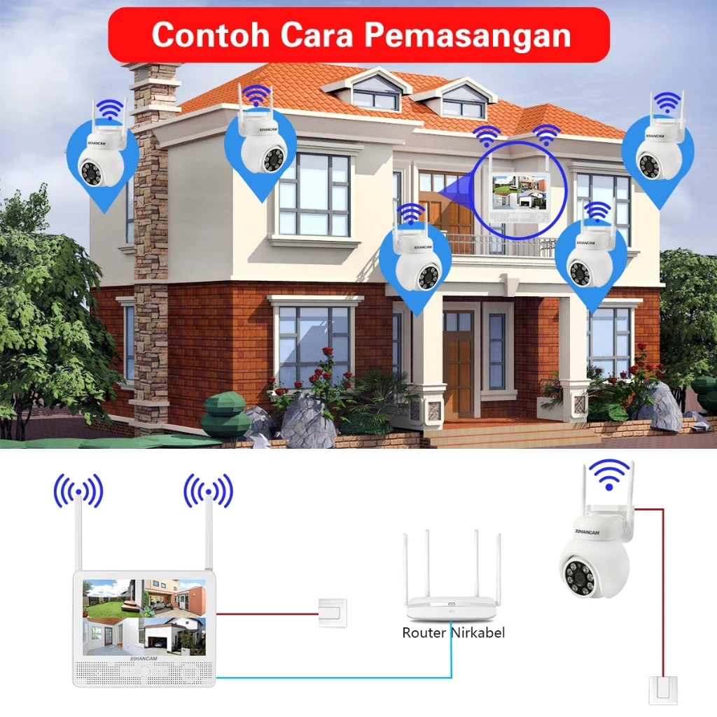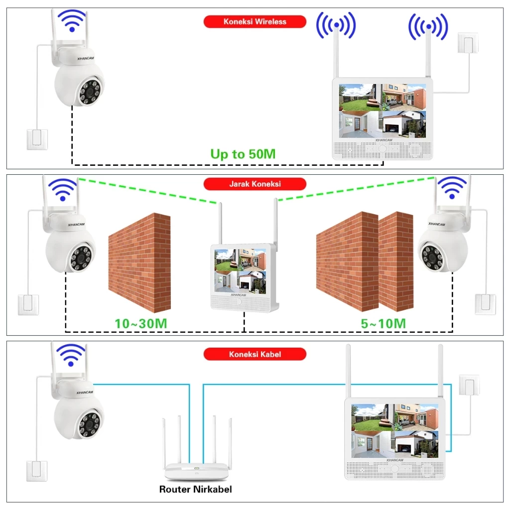 - NVR Wireless + Monitor dan kamera kita adalah versi H.265 yang memiliki kualitas gambar 5MP;