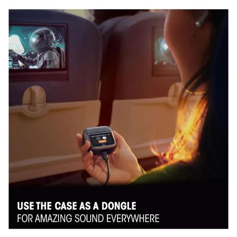 • Bertindak sebagai audio transmitter nirkabel, memungkinkan Anda untuk menghubungkan ke perangkat audio analog atau digital (misalnya TV pesawat, konsol game) melalui kabel AUX atau USB-C, lalu mentransmisikan audio ke earbud secara nirkabel.