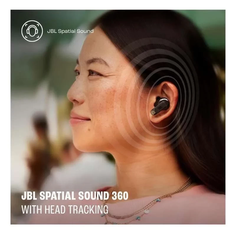 • JBL Spatial 360 Sound dengan Head Tracking: Fitur ini mengubah suara stereo menjadi pengalaman suara spasial yang lebih imersif, seolah-olah suara datang dari segala arah. Dengan head tracking, suara terasa lebih alami dan stabil, mirip pengalaman menonton di bioskop.