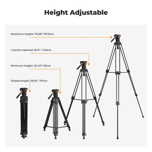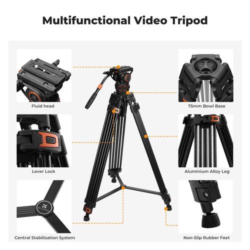 K&F KF KNF Concept 17.6lbs/8KG Load Capacity Fluid Head Tripod Camera Tripod Maximum Height 75.2"/1.91m Video Tripod VA3+BV10