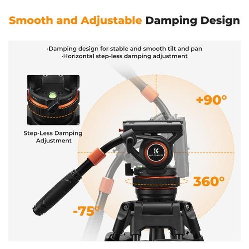 * Hydraulic damping ensures smooth camera movement in horizontal and vertical directions, and can achieve vertical angle adjustment from 75° to 90°, suitable for video shooting and static photography requiring fine composition.