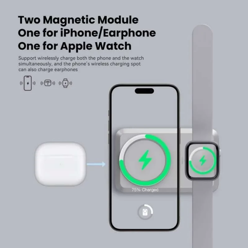 2. Dua modul magnetik internal untuk pengisian nirkabel, iPhone, Earphone, Apple Watch, dll.