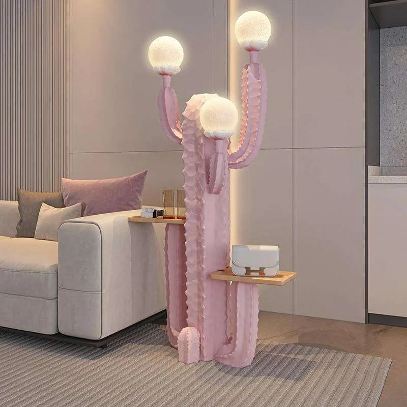 Cactus Standing Lamp menghadirkan perpaduan sempurna antara desain shabby chic dan eclectic yang unik dan memikat. Dengan bentuk kaktus yang eksentrik dan estetika lembut, lampu ini tidak hanya berfungsi sebagai pencahayaan tetapi juga sebagai elemen dekoratif yang mempercantik ruangan. Material resin yang kokoh dipadukan dengan bola lampu PVC memberikan kilauan hangat yang lembut, menciptakan suasana nyaman dan menyenangkan di setiap sudut rumah. Tray kayu di bagian tengahnya memberikan ruang tambahan yang fungsional untuk menata aksesoris atau barang favorit Anda.