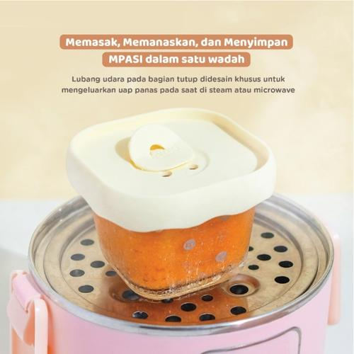 • Tutup terbuat dari bahan silicone tebal sehingga sudah anti bocor dan menjaga makanan bayi tidak terkontaminasi ketika disimpan. Tutup juga bisa sekaligus digunakan saat mengukus / memasak karena terdapat ventilasi udara pada tutup yang dapat mengeluarkan tekanan panas berlebih di dalam wadah