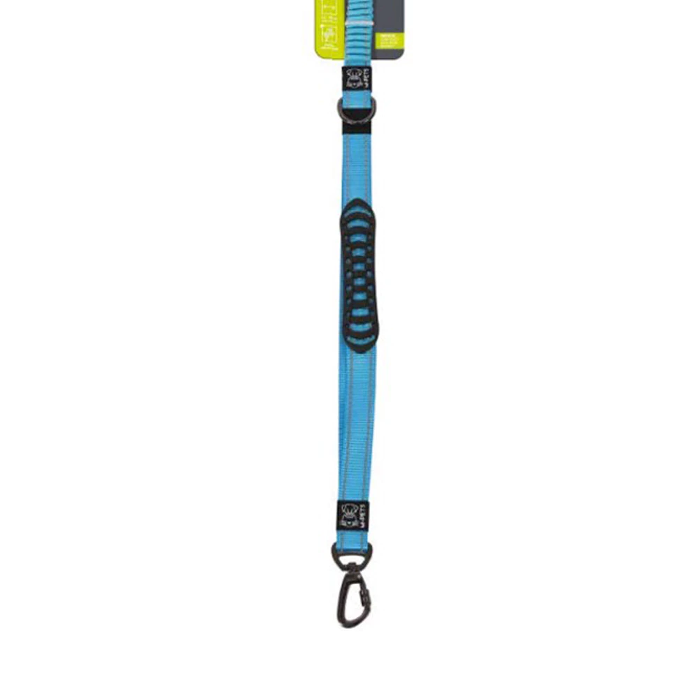 ali dengan zero shock absorbing bungee Dilengkapi sabuk pengaman gesper Memiliki safety lock Cincin logam D Dapat berputar 360 derajat Strip reflektif ganda untuk visibilitas di malam hari Berat maksimal anjing : <48 kg Panjang tali : 120-170 cm Material : polyester webbing & neoprene Lebar : 2.5 cm