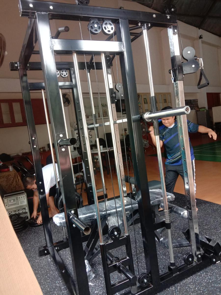 INCLUDE: *Multi Bench *Bangku Rowing FREE AKSESORIS : *Tali tarikan cablecrosover *Stick untuk latpuldown *Stick untuk Rowing *Tali trisep *J-hook *Besi dipp *Safety arm *Leg holder *Foot step *Pegangan T-barrow *Pegangan stand press - Exclude beban *Code SF951