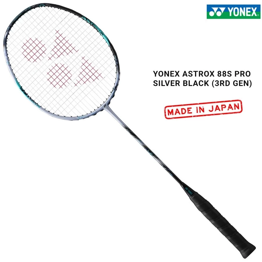 TOKYO, Japan – A new dawn is here for doubles players with the introduction of the brand new 3RD GENERERATION ASTROX 88 S and ASTROX 88 D. With defensive techniques evolving rapidly, scoring points has never been more difficult. The ASTROX 88 S and D models are designed to overcome this challenge. The release of the PRO model will be accompanied by models for every skill level, ASTROX 88 S/D TOUR, GAME and ASTROX 88 PLAY for beginners. The ASTROX 88 S allows for decisive front court attacks, while the ASTROX 88 D breaks down defenses with back court attacks. New technologies are introduced in this 3rd generation ASTROX 88 S/D as well as enhancements in the ASTROX series acclaimed Rotational Generator System. Advancing the Rotational Generator System further, a POWER-ASSIST BUMPER was added to the top of the frame, the extra weight enhances power transfer to the shuttle. The newly shaped POWER-ASSIST BUMPER fits seamlessly onto the racquet, reducing air resistance. In the new PRO and TOUR models 2G-Namd Flex Force* was implemented throughout the shaft to maximize shot power. 2G-Namd Flex Force is a new graphite characterized by its quick flex and snapback capabilities. Combined with the newly enhanced Rotational Generator System, the rapid flex and snapback allows for continuous attacks and a new dawn for doubles players. ? SPECIFICATION YONEX ASTROX 88S PRO (3RD GEN) YONEX ASTROX 88S PRO (3RD GEN) Flex: Stiff Frame: HM Graphite, CFR, Tungsten Shaft: HM Graphite, 2G-Namd™ FLEX FORCE, Ultra PE Fiber Joint: NEW Built-in T-Joint Weight/Grip Size: 4U (Avg. 83g) G5,6; 3U (Avg. 88g) G5,6 Stringing Advice: 4U: 20 – 28 lbs; 3U: 21 – 29 lbs Color: Silver/Black Item Code: 3AX88SP Made in Japan Bonus : - Tas Cover Yonex Astrox