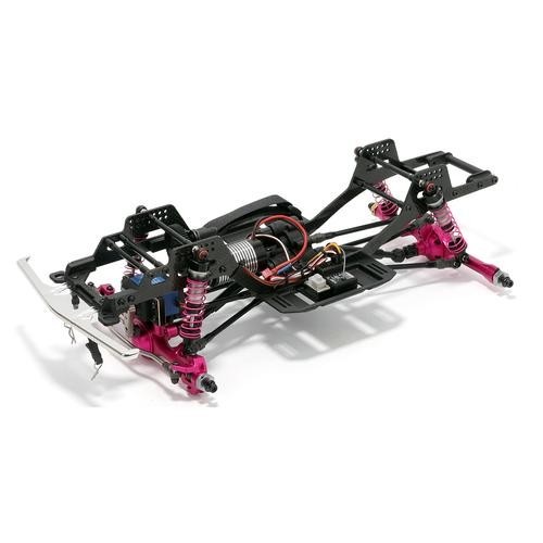 136100PRO "Shooter", an LCG-FOC brushless version and 1/10 high-performance crawler, is jointly developed by RGT and Hobbywing Technology. "Shooter" is RGT's first RTR vehicle equipped with brushless motor and low center of gravity structure. The new design is reflected in its excellent material usage,75% of vehicle chassis is assembled with CNC metal material parts, and the material consists of carbon, copper, 45# steel and aluminum. "Shooter" has distribution structure, motor-mounted in front, and the counterweight ratio is 6/4 at front and rear of chassis. "Shooter" is equipped with an all-in-one brushless FOC ESC motor, the ESC is 30 A and the brushless motor is 2200KV. The internal rotor magnetic field directional control drive mode has strong low-speed torque and super good linearity, and the motor runs smoothly and quietly, with excellent waterproof and dustproof performance, easily coping with various climates and site environments. "Shooter" comes in two colors, one is lively and cute pink body with pink metal axles, and the other is metal blue body with calm black metal axles.