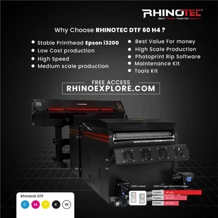 ✔️Prinhead EPSON 13200 – Rhinotec DTF menggunakan Printhead EPSON 13200 untuk menunjang kestabilan produksi dan warna yang dihasilkannya pun lebih maksimal. ( 1 Jam = 24 - 25 Meter )