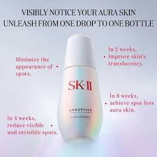 (Mencerahkan Kulit/Glowing skin) GENOPTICS ULTRA AURA ESSENCE ( Serum Mencerahkan Kulit dan Meratakan warna kulit, Glowing Skin) 75ml SKII's new essence dengan terobosan terbaru dalam whitening technology. Dengan Pitera, GenOptics Aura Complex membantu melenyapkan noda-noda yang tersembunyi dan memberikan anda aura kulit cerah sempurna dari dalam. Dengan desain baru auto-fill dropper, hanya setetes untuk hasil yang sempurna. Esens yang ringan, selembut susu dan mampu menyerap sempurna ke dalam kulit