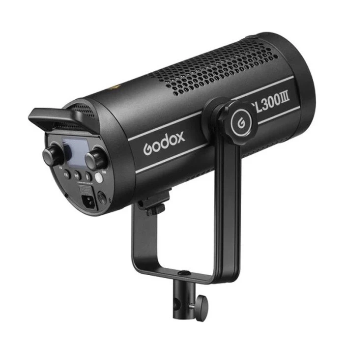 % In the Box % - Lampu Godox SL-300III -Protection Cover -Power Cable / Adaptor Charger -Led Reflector Key Features : For Studio and Film/TV Production Output: 99,300 Lux, 330W 5600K Color Temperature, 96 CRI On/Off Quiet Fan Cooling, Dims 0-100% 360° Rotatable Yoke, Special Effects 32 Channels, 16 Groups Remote Control The SL-300III LED Video Light from Godox is a sophisticated light source with a full range of professional features. Color temperature is a solid and dependable 5600K and it has high CRI/TLCI ratings of 96/97 to indicate accurate color reproduction. The light intensity is variable from 0 to 100% and while you can make adjustments locally on the fixture you can also make them from distances up to 164~39; with an optional radio remote or from your smartphone with the Godox app from up to 98~39; away. The fixture is kept cool by two quiet fans that can be turned off in sound sensitive situations.