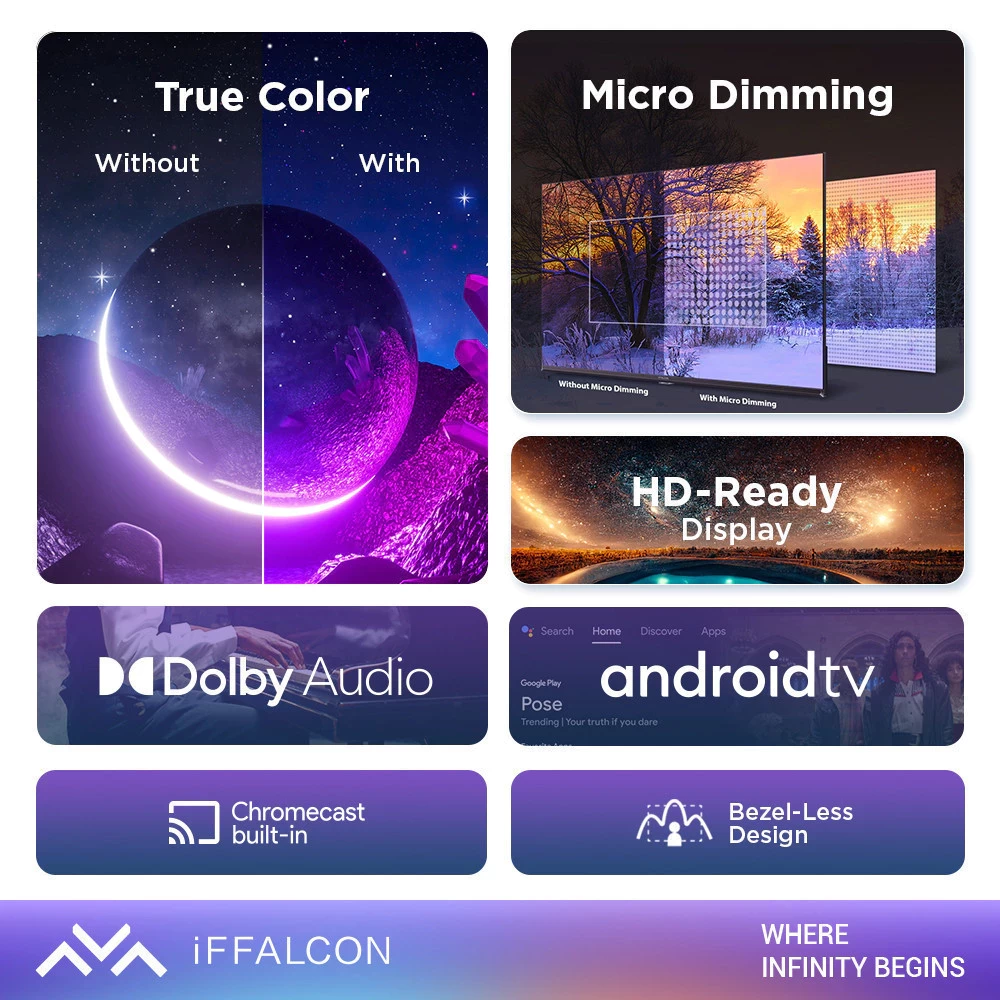iFFALCON Seri S53 memiliki resolusi yakni HD, dengan beberapa fitur tambahan HDR10, Micro Dimming, dan DoIby Audio untuk hasil gambar cerah dan mulus, serta audio yang jernih. Penonton dapat menikmati film, acara TV, dan aplikasi terlengkap dan terkini.