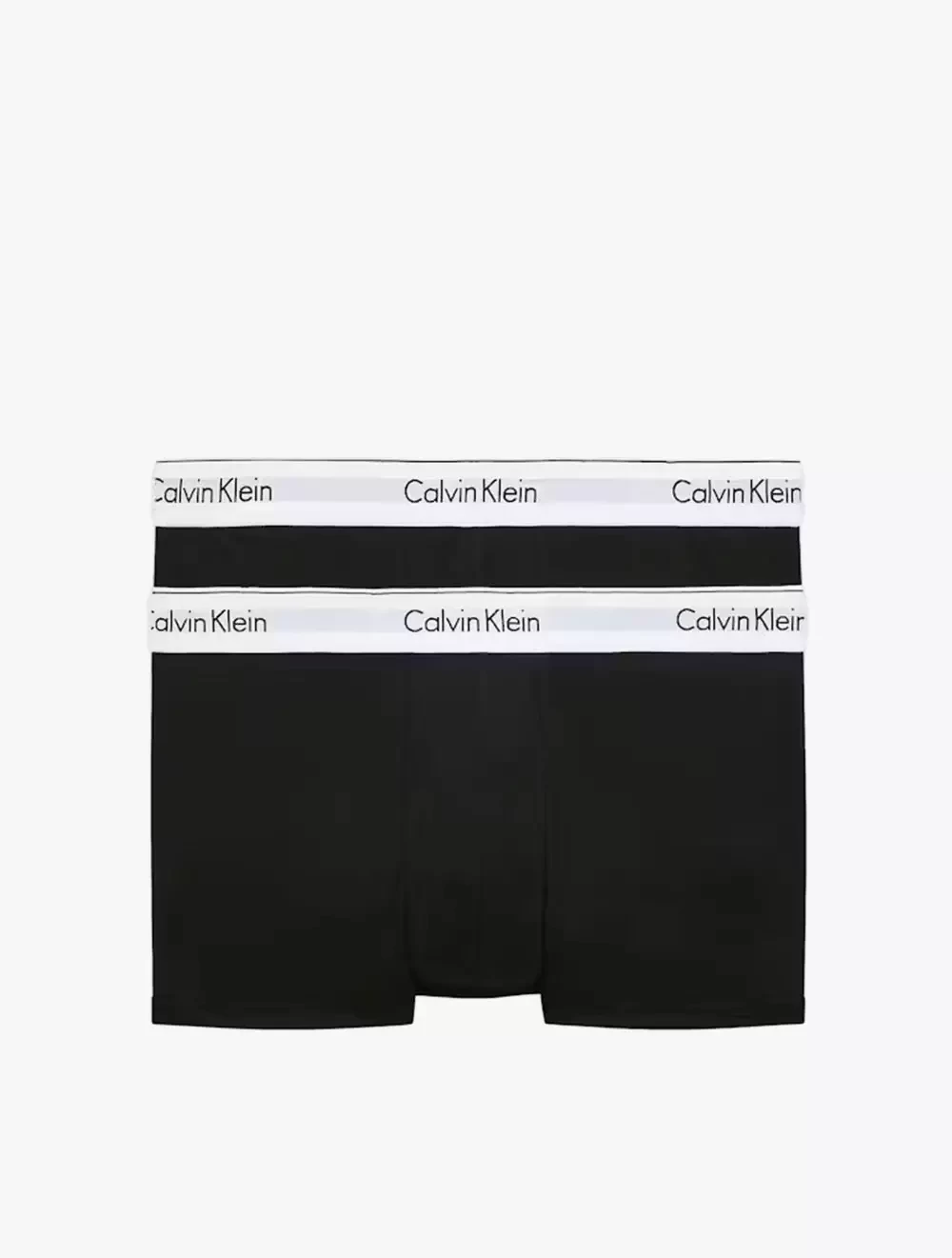 A pack of 2 Calvin Klein trunks made from comfortable cotton stretch fabric, featuring an elastic logo waistband and a contoured pouch.