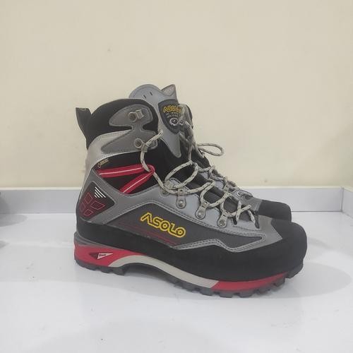 Made In ROMANIA.  No BOX NO TAG. Kondisi BARU, Hand Carry.  Size 42 Ladys. Insole 27 cm.  STOK CUMA 1. Prefer COD JAKSEL.  Asolo Parete Nord GORETEX VIBRAM Water-resistant Schoeller K-Tech upper. Insulated, waterproof and breathable Gore-Tex lining. Provided with a Vibram outsole offering maximum support and torsonial stability, adaptable to semi-automatic crampons. The right choice in terms of lighteness and technology. A revolutionnary compact boot, able to guarantee maximum performance and agility. Specifications: - UPPER: Microfibre + High Tenacity Nylon. - LINING: Gore-Tex Insulated Comfort Footwear. - LASTING BOARD: Duo Asoflex Ascent in Nylon Loaded With Fiber Glass + Eva cover. - ANATOMIC FOOTBED: Lite 3. - SOLE: Vibram 1229 Mulaz + Dual Density Microporous Midsole + PU Heel + TPU Crampons Insert.. - WEIGHT: 612(g) Technology: - Vibram - Goretex: GORE-TEX Extended Comfort Footwear offers non-insulated protection to keep you dry and comfortably cool in moderate to warm conditions, and during higher activity levels.