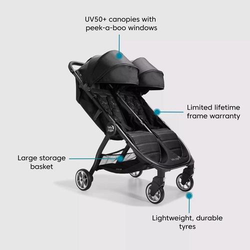 Baby Jogger City Tour 2 Double Pitch Black - Kereta Dorong Lipat Bayi Travelling