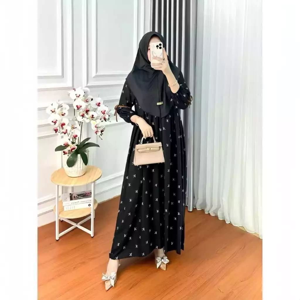 Diora Dress Gamis Pita Model Lengan Balon Bahan Rayon Premium Busana Muslim Wanita