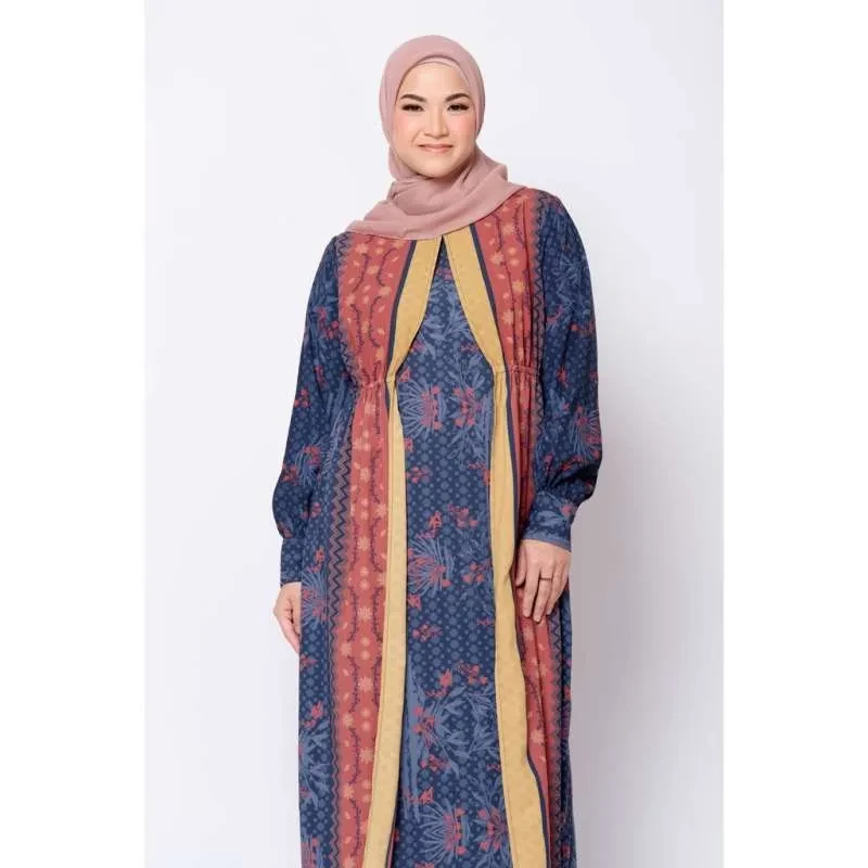• Pravita Dress printing dengan model outer + karet pada bagian depan, lengan manset kancing kanan dan kiri, panjang baju 135-140cm