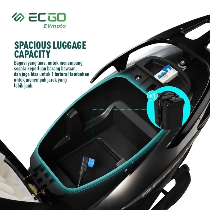 Spesifikasi Motor Listrik ECGO-3 : - Baterai: 64V 27Ah - Lithium - Jarak Tempuh: 80km/Baterai - Menyesuaikan cara berkendara - Kecepatan Maksimal: 65km/jam - Waktu Pengisian Baterai: 5 Jam (Reguler Charger), 2,5 Jam (Fast Charger) - Ukuran Ban: 12 inch (Tubeless) - Panjang Motor: 175cm - Daya Angkut: Max. 200kg - Tahan Air: Max. 30cm - Kapasitas Unit Baterai: Up to 2 Baterai - Rem Depan: Cakram - Rem Belakang: Cakram Pembelian sudah termasuk : 1 Unit Motor ECGO-3 1 Baterai Lithium Subscription 1 Reguler Charger