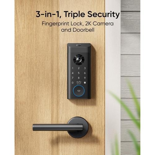 eufy Video Smart Lock, 3-in-1 Camera+Doorbell+Fingerprint Keyless Entry Door Lock, Smart Built-in Wi-Fi Deadbolt for Front Door, Auto Lock, App Remote Control, Easy Installation