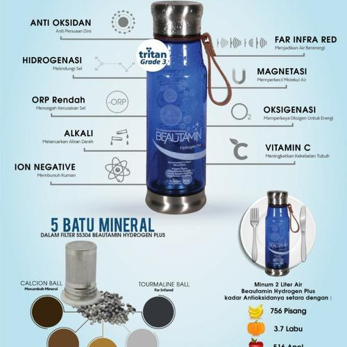 BEAUTAMIN HYDROGEN PLUS memiliki filter unik yang yang terdiri dari gabungan mineral yang bermanfaat untuk kesehatan :