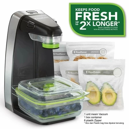 FoodSaver ini dapat menyimpan sisa makanan dengan mudah dan cepat. Tas FoodSaver Fresh Zipper adalah alternatif hemat ruang yang bagus untuk wadah, dan dapat digunakan untuk memanfaatkan sistem Pengawetan Makanan Segar FoodSaver ini. Juga bebas BPA dan mudah digunakan, ini bagus untuk menjaga kesegaran makanan beku yang anda gunakan setiap hari, seperti daging deli, keju, camilan, dan sisa makanan.