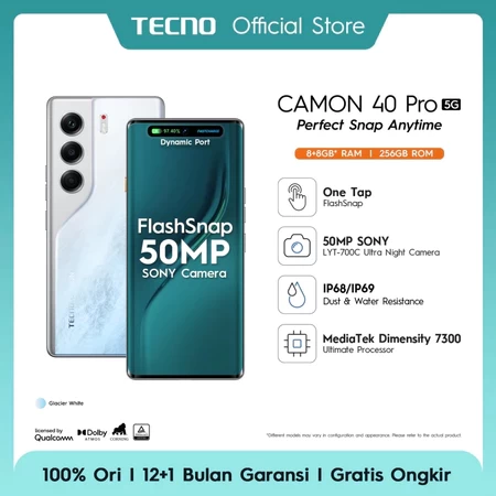 GADGET ? - TECNO CAMON 40 Pro 5G 8GB*256 GB, Mediatek D7300 Ultimate, 6.78” FHD+144HZ 3D Curved Amoled, 50MP