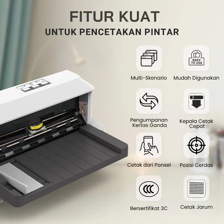 Dengan resolusi tinggi 180 DPI dan kecepatan 150 karakter/detik, printer ini mencetak dengan detail dan kejelasan tinggi. Dilengkapi jarum cetak kuat, mampu mencetak hingga 1+5 salinan karbon dalam satu proses.