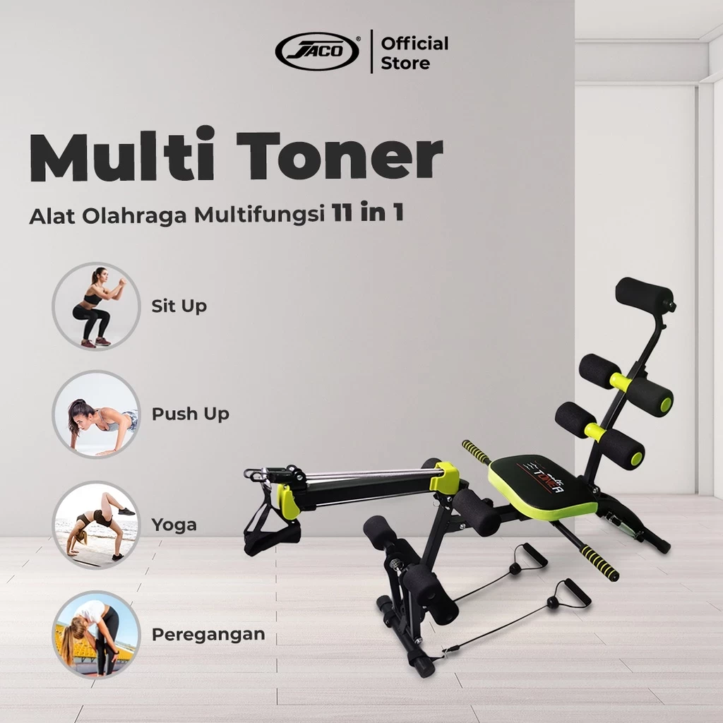 Malas berolahraga karena tidak memiliki banyak waktu luang? Dengan Multi Toner, kegiatan olahraga Anda menjadi lebih praktis. Anda bisa melakukan berbagai macam latihan dalam satu alat olahraga. Multi toner merupakan alat fitnes multifungsi yang praktis dan ekonomis! Keunggulan Multi Toner : 1. Multifungsi - Satu alat olahraga bisa digunakan untuk berbagai macam latihan, antara lain sit up, push up, peregangan, yoga, latihan lengan, kaki, dan bagian tubuh lainnya. 2. Fungsi Twist - Tempat duduk yang dapat diputar 360 derajat bisa digunakan untuk melatih pinggang, merampingkan dan mengecilkan ukuran pinggang dan paha. 3. Tali Elastis - Dilengkapi tali yang dapat digunakan untuk latihan otot dan berbagai variasi latihan lainnya. 4. Pengaturan level - Masing-masing bagian bisa diatur level tekanannya, misalnya 3 tingkat berbeda pengaturan sandaran belakang, 4 tingkatan beban yang dapat disesuaikan dengan pengguna, serta penyesuaian sandaran kepala. 5. Sandaran Busa yang nyaman dan empuk serta memberikan efek pijatan pada punggung. 6. Cocok digunakan baik pria maupun wanita. Pria dapat menggunakan multi toner untuk membentuk perut menjadi sixpack, sedangkan wanita dapat pula menggunakannya untuk melangsingkan (merampingkan) dan menurunkan berat badan. Dimensi : 81 x 33 x 26 cm Maximum pengguna : 110 kg ISI PAKET : Rangka utama, rangka latihan lengan, rangka pada pergelangan kaki, sandaran kepala, 4 unit busa punggung, 2 unit busa pendek pergelangan kaki, 4 unit busa panjang pergelangan kaki, 2 unit pegangan di bawah tempat duduk, 2 unit rangka pergelangan kaki, 1 unit pin penyesuaian pada sandaran, 1 pin untuk lutut, 2 unit tali elastis, 4 unit gulungan pegas, 2 unit penghubung cap sandaran bagian atas, 2 unit penghubung cap sandaran bagian bawah, peralatan kunci, dan buku manual . KEBIJAKAN RETUR : 1. Pengajuan Retur wajib disertakan video unboxing produk yang diterima 2. Pengajuan Retur tanpa melampirkan video unboxing dapat menyebabkan pengajuan komplain ditolak.