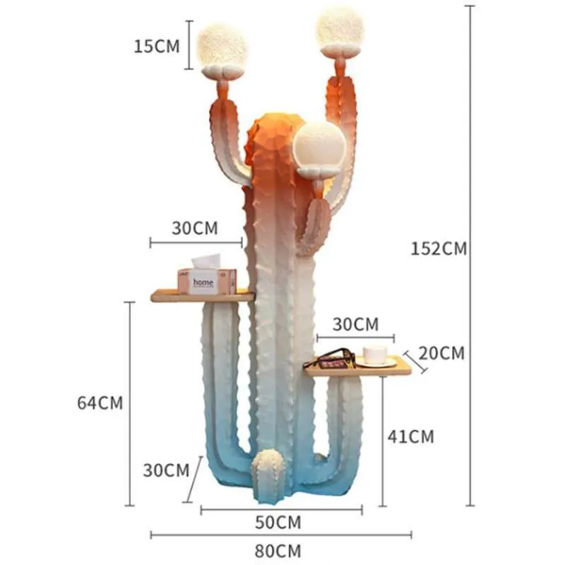Cactus Standing Lamp menghadirkan perpaduan sempurna antara desain shabby chic dan eclectic yang unik dan memikat. Dengan bentuk kaktus yang eksentrik dan estetika lembut, lampu ini tidak hanya berfungsi sebagai pencahayaan tetapi juga sebagai elemen dekoratif yang mempercantik ruangan. Material resin yang kokoh dipadukan dengan bola lampu PVC memberikan kilauan hangat yang lembut, menciptakan suasana nyaman dan menyenangkan di setiap sudut rumah. Tray kayu di bagian tengahnya memberikan ruang tambahan yang fungsional untuk menata aksesoris atau barang favorit Anda.