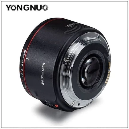 BARANG BARU DAN ORIGINAL 100% GARANSI 1 TAHUN GARANSI TUKAR BARU 14 HARI (UNIT, BOX DAN AKSESORIS LAIN TIDAK BOLEH CACAT/RUSAK) SETIAP KOMPLAIN WAJIB ADA VIDEO UNBOXING (VIDEONYA HARUS FULL DARI PAKET DIBUKA SAMPAI TES PRODUK) TANPA VIDEO UNBOXING, KOMPLAINAN TIDAK BISA KLAIM VARIAN WARNA : - BLACK - WHITE VARIAN PAKET : - PAKET STANDARD : KELENGKAPAN STANDARD BOX (TANPA BONUS) - PAKET BONUS :KELENGKAPAN STANDARD BOX + FILTER UV + LENSHOOD + LENSPEN KELENGKAPAN STANDARD BOX Yongnuo YN 50mm f/1.8 II Lens for Canon EF Front Lens Cap Rear Lens Cap Key Features EF-Mount Lens/Full-Frame Format Aperture Range: f/1.8 to f/22 Multi-Coated Lens Elements Autofocus with AF/MF Switch Minimum Focusing Distance: 1.15' Durable Chrome-Plated Metal Mount Seven-Blade Diaphragm Filter Diameter: 58mm Allows Firmware Upgrade Through Camera Focal Length 50mm Maximum Aperture f/1.8 Minimum Aperture f/22 Lens Mount Canon EF Lens Format Coverage Full-Frame Angle of View 46° Minimum Focus Distance 1.15' / 35 cm Maximum Magnification 0.21x Optical Design 6 Elements in 5 Groups Diaphragm Blades 7 Focus Type Autofocus Image Stabilization No Filter Size 58 mm (Front) Dimensions (ø x L) 2.95 x 2.01" / 75 x 51 mm Weight 5.71 oz / 162 g