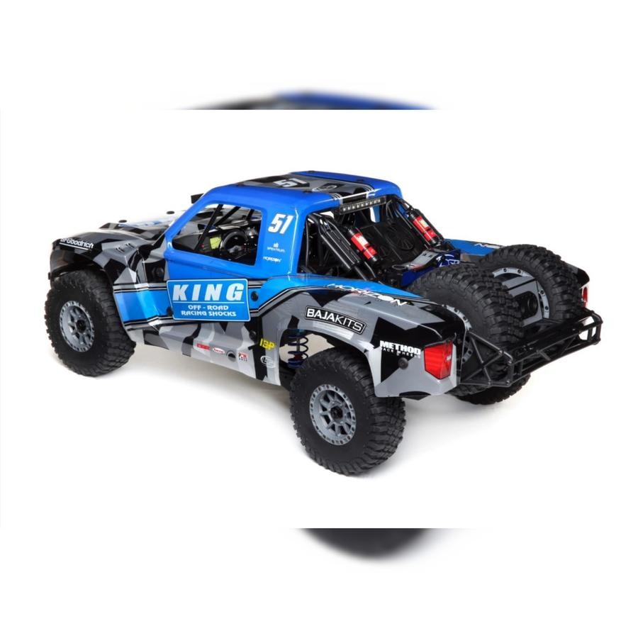 Features: Licensed Method Racing Beadlock Wheels Licensed BFGoodrich Mud-Terrain T/A KM3 Bottom Loading Battery Tray King Racing Body and Cage work with dual spare tires AVC - Active Vehicle Control System Redesigned Front Suspension Arms and Slider Front driveshafts Long Travel Suspension King Coil-Over Oil Filled Shocks with new springs 8S Capable Motor and ESC Longer Rear Trailing arm with increased wheelbase Shaft Driven 4wd Drivetrain Updated HV capable S905 Large Scale Steering Servo Front Bumper with realistic lower valance and Brenthel logo Stiffer front sway bar LED Lights Scale Details Spektrum DX3 Radio System Specifications: Approximate Assembly Time: Less than one hour Ball Bearings: Full set Battery: Sold Separately Body: One-piece trimmed and painted Brakes: Integral with ESC Charger: Sold Separately Chassis: 4mm 6061-T6 Aluminum Plate Completion Level: Ready-To-Run Differential: Bevel Gear, Sealed Drivetrain: 4WD Drive Type: Forward/Brake/Reverse Final Drive Ratio: 8.22:1 Front Track: 16.3 #34; (414mm) Power Type: Electric Gear Pitch: 1.5M Ground Clearance: 3.5 #34; (89mm) Internal Gear Ratio: 4.88:1 Motor Type: Brushless Pinion: 19T Product Height: 12 #34; (305 mm) Product Length: 35 #34; (889 mm) Product Weight: 21.6 (9.8kg) without battery Product Width: 15.6 #34; (396 mm) Radio: Included Rear Track: 16.1 #34; (408.9mm) Receiver: Included Scale: 1/6 Servos: Included Shock Type: Coil-Over Oil Filled Long Travel Aluminum Body Speed Control: Included Spur Gear: 37T Spur Gear, 18/24 Compound Gear Suspension: Front, Long Travel Independent, Rear, 4-Link Solid Axle Vehicle Type: Desert Truck Water-Resistant: Yes Wheelbase: 20.2 #34; (513mm) Includes: (1) 1/6 Super Baja Rey 2.0 4WD Brushless Desert Truck (1) Spektrum Firma ESC and Motor (1) Spektrum DX3 Radio System (1) Product Manual Needed to Complete: 8S Surface LiPo Battery Compatible LiPo Charger