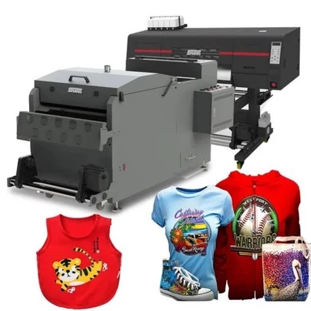 Keunggulan : ✔️ Cepat dan Praktis – Karena menggunakan metode Direct Transfer Film (mencetak langsung diatas kertas film ) ✔️tidak lagi memerlukan tahapan cutting dan weeding. Jadi proses produksinya lebih cepat dan efisien. ✔️ Hasil Lebih Detail – Sangat cocok unutk cetak logo-logo kecil ✔️Kuat dan tahan lama – dapat menghasilkan sablon yang kuat, stretch, dan warna yang solid ✔️Cost produksi rendah – Karena tidak lagi melalui tahapan cutting dan weeding, cost produksi kamupun jadi lebih rendah ✔️Prinhead EPSON 13200 – menggunakan Printhead EPSON 13200 untuk menunjang kestabilan produksi dan warna yang dihasilkannya pun lebih maksimal. ✔️Memiliki Garansi – Selain itu mesin ini dilengkapi dengan garansi mesin dan printhead selama 1 tahun Harga Printer DTF Printer : 135.000.000 ( Sudah Termasuk Printhead ) Shake Powder Machine ( Curing Machine ) = 35.000.000 Spareparts Print Head Epson i3200 = 18.000.000 ( Printhead Garansi 1 Tahun ) Period 1 = 1 - 6 Bulan Pemakaian jika rusak , 100% FREE Printhead Claim / Maksimal 1x penggantian Period 2 = 7 - 12 Bulan Pemakaian jika rusak , 50 % Discount / Maksimal 1x penggantian Software : Photoprint