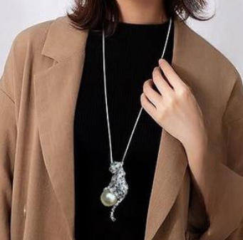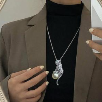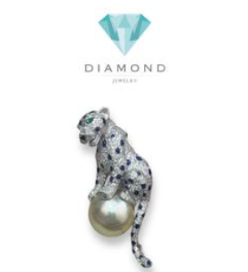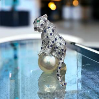 Panther pearl sapphire Brooch 18k white gold-Diamond Jewelry
