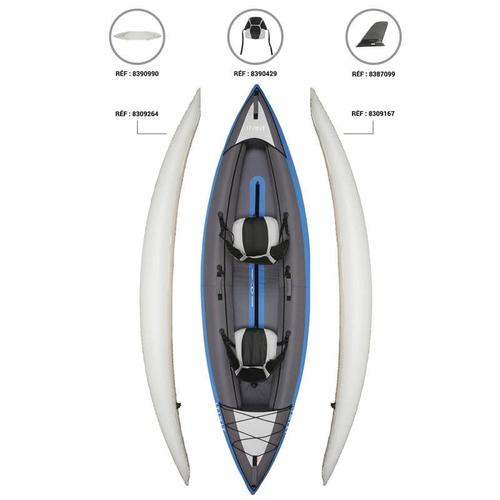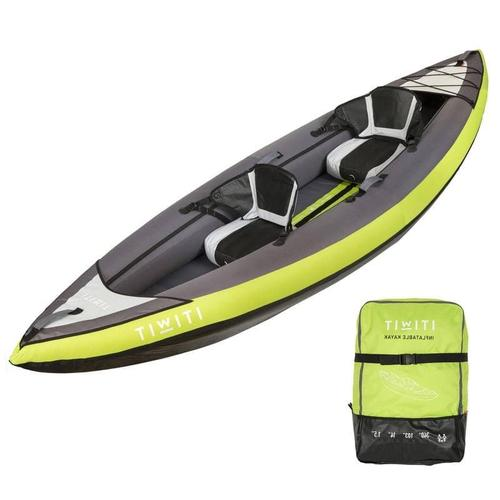 Baca deskripsi sampai selesai ini bukan kayak murahan bahan karet yang gampang bocor dan cuma beberapa kali pakai lalu tidak bisa digunakan lagi. Ini kayak bagus yang bisa digunakan bertahun-tahun bahkan ada garansinya sampai 2 tahun. for beginer atau wisata, kapasitas 1 sampai 2 orang berat max 150 kg untuk perairan tenang (boleh laut berombak kecil) dan tidak berkarang. Note: tidak untuk arung jeram. 7 menit dipompa hingga 1.5 PSI (0.1 bar) ada 3 kompartemen yang membuat kayak ini mengapung, 2 sisi kiri dan kanan serta bagian lantainya padle. Maksudnya begini, Inflatable kayak yang lain kan cuma 1 yg di pompa, jika bocor di tengah lautan, kan runyam tuh. apalagi ada hiu numpang lewat. nah kayak ini ada 3 bagian terpisah yang membuatnya mengapung yaitu bladder angin bagian kiri dan kanan serta lantai. jadi dipompa ada 3 yang utama, bagian kiri, kanan dan tengah. jadi misal ada kebocoran di salah satu bagian, anda gk akan tenggelam, karena ada 3 bagian lain yang bakal membuat anda mengapung. bagusnya produk ini adalah bahannya bukan karet saja seperti yang lain, tapi tube karet tebal, dilapisi kain keras lalu di kunci pakai resleting. bagian bawah ditambah lagi dengan lapisan karet tebal vinyl PVC berkualitas. Bisa dibayangkan tebal dan kuatnya bagaimana. Jadi lebih aman terhadap benturan dan membuat kayak ini lebih panjang umurnya serta bisa digunakan sesering mungkin. tube samping dan bawah yang lebar membuat kayak ini stabil dan nyaman. dilengkapi dengan 3 sirip di bawah yang berfungsi untuk menyeimbangkan kayak. ujung depan dan belakang memberikan hydrodinamis kursi bisa di pindahkan sesuai keinginan panjang 3,4M lebar 1,03 M saat dilipat 67x44x30 cm berat 14 kg dilengkapi dengan repair kit belum termasuk pompa dan dayung Standard ISO 6185-1 cocok dipakai sendiri atau buat disewakan bahan: Main fabric : 100.0% Polyester (PES) Inner fabric : 100.0% Polyvinyl chloride (PVC) - Phtalate free barang sangat berkualitas, garansi hingga 2 tahun