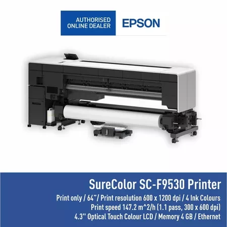 Tingkatkan produktivitas bisnis Anda dengan performa tinggi SureColor SC-F9530. Printer transfer dye-sublimation 64" serbaguna ini didesain dari awal untuk menghadirkan keandalan yang tidak perlu dikhawatirkan dalam lingkungan bervolume tinggi.