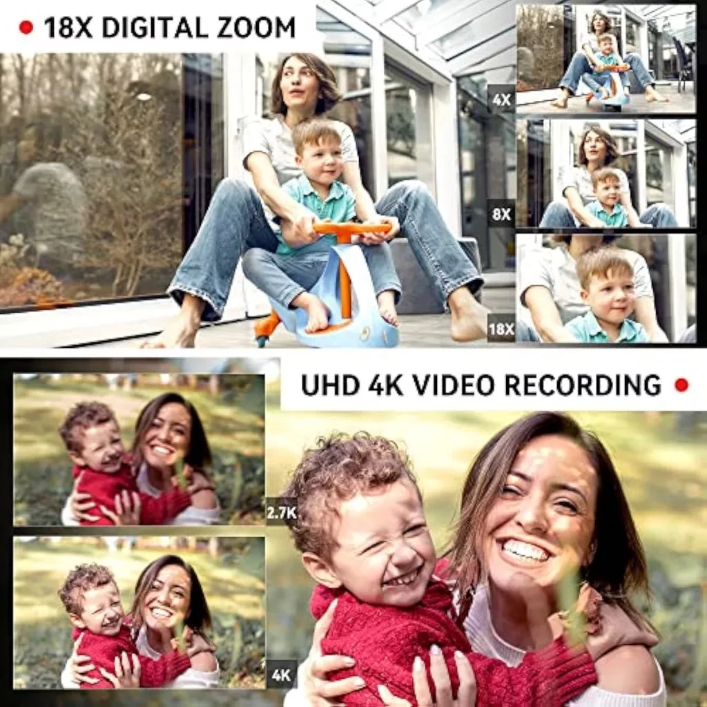 【Parameter】 ✨ Penyimpanan: Mendukung kartu SD; Untuk menggunakan kecepatan kartu Kelas 10 atau lebih tinggi dan hingga 256GB (inklusif) PS: Kamera ini dilengkapi dengan kartu SD 64GB ✨ Resolusi Video: 4K_3840X2160p (60/30FPS) 2.7K_2688X1520p (30FPS) FHD_1920X1080p (60/30FPS) HD_1280x720p (120/60/30FPS) ✨ Format: MP4 ✨ Piksel Foto: 3M, 5M, 8M, 12M, 20M, 24M. 30M, 48M, 56M, 64M ✨ Format: JPG ✨ Zoom: 18X digital zoom ✨ Jangkauan fokus otomatis (AF): 10CM hingga Jarak Tak Terbatas ✨ kecepatan: otomatis/ISO100/ISO200/ISO400/ISO800/ISO1600/ISO3200/ISO6400 ✨ jepretan: F/2.0, f=7.62mm ✨ kontrol WIFI (APP): dukungan ✨ antarmuka perekaman MIC eksternal: dukungan ✨ operasi kendali jarak jauh nirkabel: dukungan ✨ lampu pengisi LED: dukungan ✨ keseimbangan putih: otomatis/cerah/berawan/pijar/fluoresens ✨ suplemen pencahayaan:–3.0EV~+3.0EV ✨ pengatur waktu: 3d/5d/10d/20d ✨ antarmuka komputer: USB2.0 tipe mikro (kecepatan tinggi), antarmuka HDMI, slot kartu SD, antarmuka mikrofon eksternal ✨ Mati otomatis: Mati/3 menit/5 menit/10 menit ✨ Layar LCD: Layar sentuh kapasitif IPS definisi ultra tinggi 4,0 inci (16:9) ✨ Bahasa: Inggris (default), Mandarin Sederhana, Mandarin Tradisional, Jepang, Korea, Rusia, Jerman, Prancis, Italia, Spanyol, Portugis, Thailand, (bahasa lain memerlukan menu khusus) ✨ 【layar】 Layar besar 4 inci dengan rotasi 270 °, memungkinkan Anda tidak hanya mengambil foto barang lain, tetapi juga berswafoto ✨ 【Streaming langsung dan konektivitas WiFi】 Dilengkapi dengan kabel USB untuk menghubungkan ke komputer atau laptop, opsi untuk mengisi daya dan menghubungkan ke komputer akan muncul. Setelah koneksi berhasil, Anda akan masuk ke perangkat lunak tempat Anda dapat menemukan nama perangkat yang sesuai untuk terhubung ke streaming langsung. Kabel HDMI dapat dihubungkan ke monitor untuk pemutaran video definisi tinggi. Kamera memiliki fungsi WIFI, dan saat fungsi WIFI diaktifkan, akan ada kode QR. Pindai kode QR untuk mengunduh perangkat lunak yang relevan, dan hubungkan kamera ke WIFI untuk mengontrol kamera menggunakan ponsel Anda.