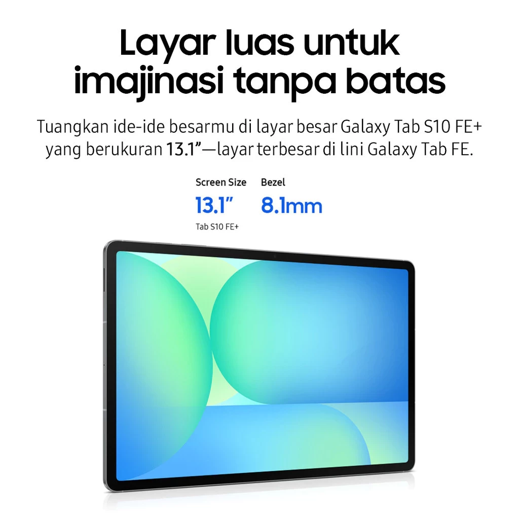 Daya tahan perangkat didukung oleh baterai besar 10.090mAh yang mendukung Fast Charging hingga 45W, memberikan ketenangan saat digunakan seharian penuh. Untuk kenyamanan tambahan, Galaxy Tab S10 FE+ juga dilengkapi dengan S Pen bersertifikasi IP68, dual speaker untuk suara stereo yang jernih, serta konektivitas lengkap seperti USB Type-C, Bluetooth 5.3, dan dukungan AI yang meningkatkan pengalaman secara menyeluruh.