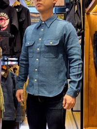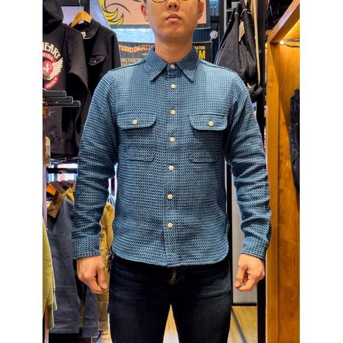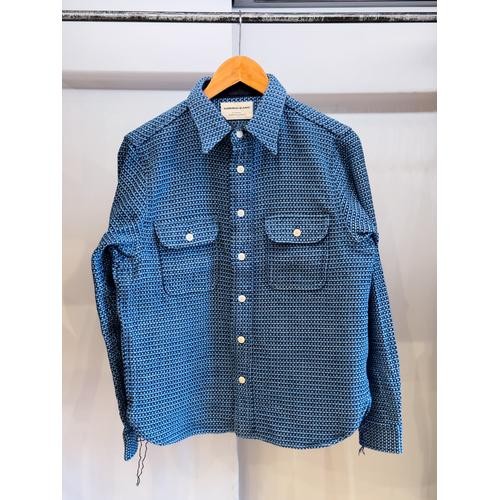 Along with the “Broken Lattice”, we also receive an impressive work shirt from Samurai. Made from thick indigo-dyed oxford fabric which are dyed using natural indigo hank dyeing process and made up from threads in three (3) indigo colors: Indigo, Light Blue and Pale Water Blue.