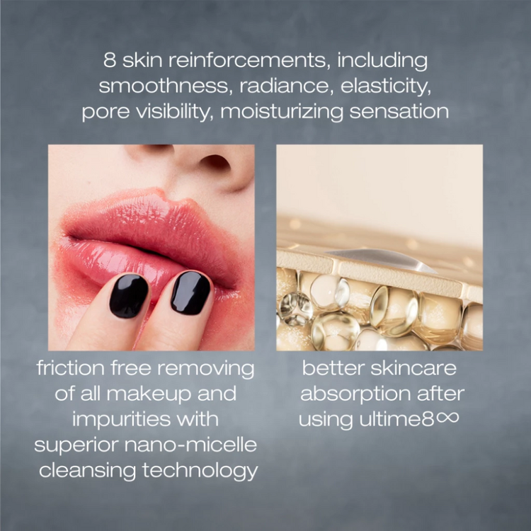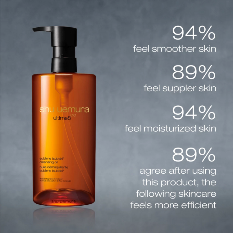 Diformulasi dengan 75% bahan perawatan kulit, minyak pembersih legendaris ini menawarkan pembersihan efektif tanpa menghilangkan kelembapan kulit. Menghilangkan kotoran dan riasan, termasuk alas bedak tahan lama, riasan bibir, riasan mata tahan air dan anti noda. Minyak tsubaki Jepang yang berharga, diperoleh dari biji yang matang dan dipetik langsung dari Pulau Toshima melalui ekstraksi perasan dingin pertama, melindungi dan menutrisi kulit Anda. Rasakan rahasia kecantikan Jepang hari demi hari dengan minyak pembersih ultime8∞. Dengan tekstur seperti kasmir, minyak pembersih ultime8 infinity sublime beauty merangkul kulit dalam kepompong kelembapan yang ringan untuk pengalaman sensorik yang tak ada bandingannya. Ini adalah mitra sempurna untuk rutinitas pembersihan dan riasan Anda.